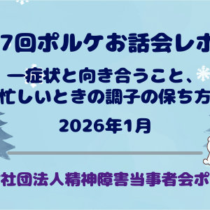 個人的にとても考えさせられるテーマだったように思います。当事者会を運営することは、時に精神的な負担になることがあります。それは精神疾患を抱えている私たちにとって特につらいことです。それでも会を続けてゆくのは、「ひとりじゃない」というメッセージを伝えたいからだと、私は思います。