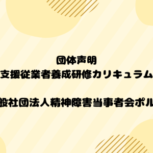 2026年1月14日 / 最終更新日時 : 2026年1月14日 精神障害当事者会ポルケ 活動報告 【活動報告】東京都の移動支援従業者養成研修カリキュラム改定について(声明) 東京都の移動支援従業者養成研修カリキュラム改定について(声明) 一般社団法人精神障害当事者会ポルケは、東京都が2026年4月1日より移動支援従業者養成研修のカリキュラムを「知的・精神障害者移動支援従業者養成研修課程」へ改 […]